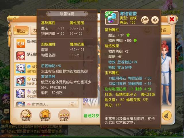 罗汉金钟特技全体三回合受到的法术伤害减免50%,完全对得起它昂贵的价格。这件寒雉霜蚕不仅带有罗汉金钟的特技,还额外提供了2%忽视物防特效,更加适合物理门派佩戴。而忽视物防的稳定收益,也提升了物理输出水平。