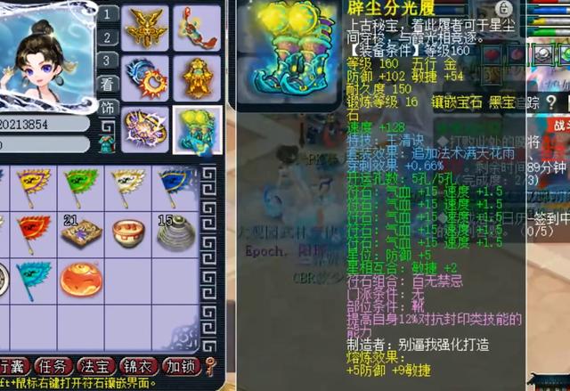 第三件是玉清诀、穿刺效果的靴子。美中不足之处,就是特技玉清诀,虽然可以解除封印,但是却无法恢复血量。如果是晶清诀(解除全体队友的各种异常状态,并恢复每人15%的气血)就完美了。