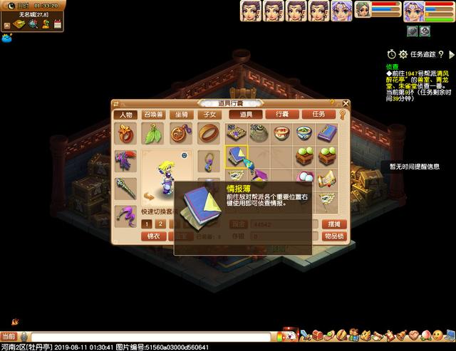窃取对方帮派情报:不用战斗,直接到指定的打开背包,右键使用情报簿就行了,都完了回自己帮派交差