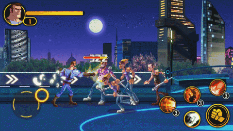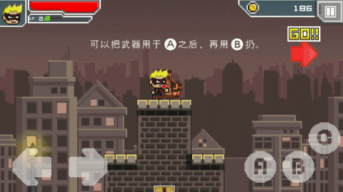 游戏的玩法则是经典的横版过关,当中操作还是非常简单的。左右方向键控制角色的移动,而A、B、C键则分别控制角色的拳击、脚踢、跳跃三个动作。