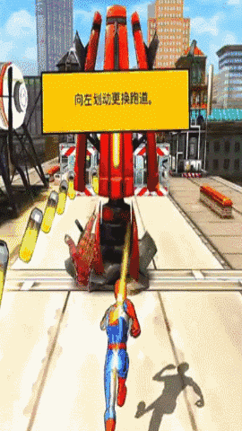 游戏虽然选了漫威中最逗比的英雄来做主角,但是并没有影响游戏的质量。故事和游戏画面设计的都很合理。不但有常见的跑酷躲避障碍的环节,而且还添加了攻击系统,因此人物的操作需要很强的记忆力。左右滑动控制人物的移动,上下滑动控制人物跳跃和和滑行。在遇到普通敌人时,向上滑动攻击敌人,在遇到带有盾牌的敌人时,就需要向下滑动。而进入爬行或者自由落地状态时,玩家还要左右晃动设备控制蜘蛛侠劈开障碍物。