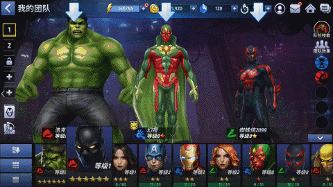 玩家在需要完成不同的任务之前可以更换自己的团队成员。当特定的超级英雄同在一队时还可以触发团队效果。每位英雄拥有的队长技能也是不同的。这就需要合理的安排和组合才能发挥整个队伍最强的实力。