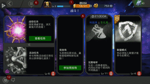 战役任务、活动任务、竞技场、联盟模式是游戏的四种玩法。在活动任务模式下,玩家可以获得各种各样的的奖励,还可以通过该模式快速获得更多的英雄。游戏是以1V1的的决斗形式进行,玩家可以根据敌对英雄的系别,更换己方英雄,进行系别克制,获得胜利。