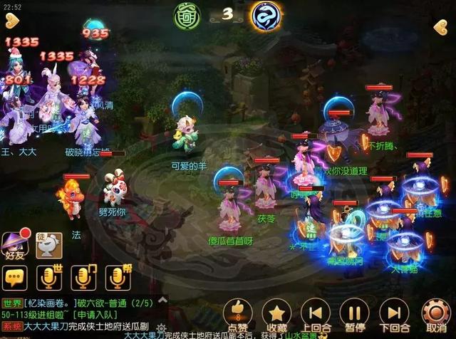 第3回合,观战方已开启罗汉金钟来进一步增强队伍法防能力。这时,对战方5人已被观战方附上尸腐毒。观战方5号位地府直接使用经脉索命,结算对战方中毒状态,直接秒出了较为可观的数据。对战方5人在受到索命经脉结算伤害后,还被消耗了一定蓝量。随后,观战方宠物攻击对战方人物目标,将对战方大唐击倒在地。