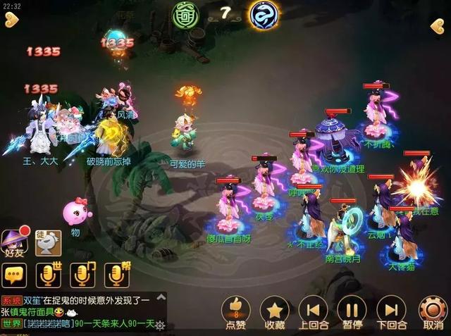 第7回合,观战方一速地府继续先手结算对战方中毒状态,4号位地府尸腐毒触发连毒效果,5号位地府接索命经脉继续打伤害。对战方月宫与化生,无法承受两次索命伤害双双倒地。对战方选择继续清观战方宠物,不过效果却不明显。