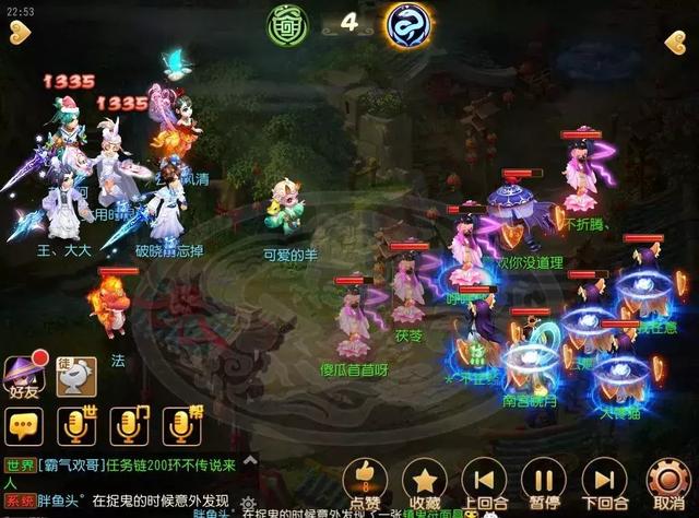 比赛开局,对战方全力输出观战方人物目标。观战方多人被对战方打至血量较低状态,特别是观战方4号位地府,直接被打至残血状态险些倒地。这时,观战方释放玉清诀与罗汉金钟,并利用地府尸腐毒与化生推气过宫,来回复队伍人物血量。观战方看似危险的局势,瞬间得到了缓解。