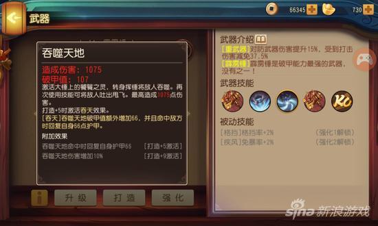吞天:吞噬天地破甲值额外增加66,并命中地方时回复自身66点护甲。