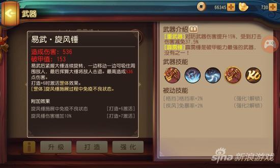 【易武旋风锤】易武后紧握大锤旋转,一边移动一边可吸住周围敌人,最后挥舞大锤将敌人击退。