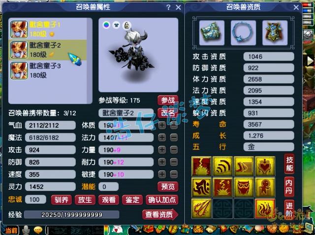还有一只12技能耐攻壁垒童子,有输出还能当血宠用。