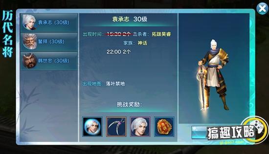 历代名将是每天的限时任务,每天的15:30和22:00都会刷新6个BOSS。