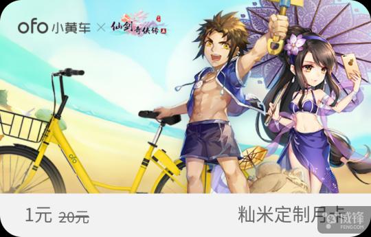 此次ofo与《仙剑五》手游携手推出的联名月卡有三个版本,分别是:仙剑五手游联名月卡、仙五夏日时装联名月卡和小蛮定制联名月卡。月卡原价20元,现在只需要1元即可买到,每天可骑行20次,每次骑行2小时内免费,超出时长正常计费。