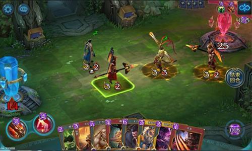 一进入《英雄战歌》,就会有种似曾相识的感觉。游戏中无论是游戏战场、角色牌技能、击杀后的提示,都有很强烈的《王者荣耀》甚至是《英雄联盟》的元素。游戏与传统卡牌枯燥的对战画面不同的是,它将角色卡牌实体化,并且融入了3D游戏地图元素,给玩家带来视觉以及听觉上的冲击感。