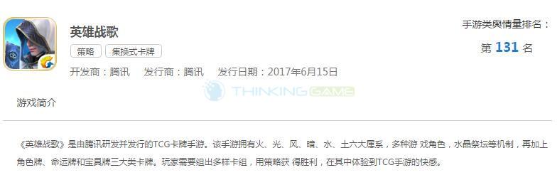 《英雄战歌》手游自6月中旬上线后瞬间淹没于其他强势新游,即使在ChinaJoy展会上推介试玩过后,仍然在榜单下游徘徊,这是为什么呢?沉寂一段时间的TCG市场是否还有空间?《英雄战歌》还能否超越“万智牌”、《炉石传说》等卡牌“大哥”们?