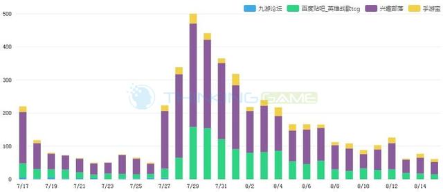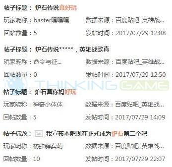 因此,在7月29日,从ThinkingGame热词走势追踪可以看出,《英雄战歌》各相关社区,炉石一词的热度达到高峰。