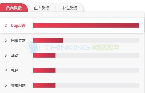 这是新游上线必经的阶段。在近一个月玩家带有负面情感的反馈中,吐槽最多的前五名分别是bug反馈、网络异常、活动、礼包以及登录问题。过多的bug必然会使得玩家减少耐心,从而造成玩家流失。
