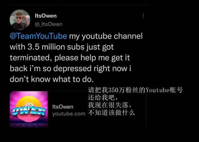 ItsOwen那个300多万粉的频道随后很快被官方终止,理由不明。值得一提的是,这一次这个频道是彻底没有了。