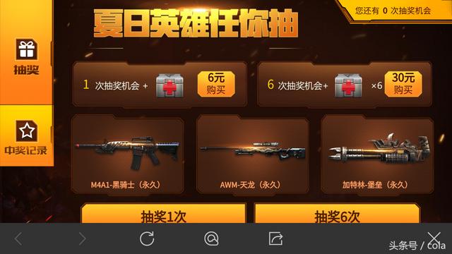 30块钱抽六次、其实这六次要是有一次抽到一把英雄武器,