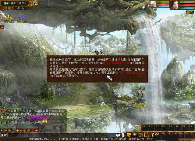 可前往蓬莱(136,57)“千岁翁”处,通过“召唤兽合真”提升天生初始成长率。这个对玩家宝宝好啊,低成长的都可以变成高成长的。重点看清楚,要20本天书,6个凝魂石,2转或3转宝宝提练重阳丹,代价不低啊,大家快把天书存起来吧,其实天书和这个有什么关系?不就是现在没人合天书宝宝了吗,任务给天书好几车,当铺身上都一堆。