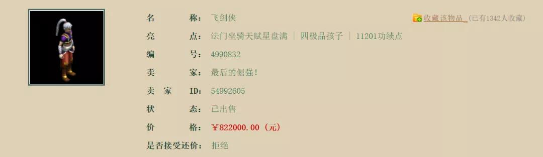 ▲前几天看号视频分享过的,88W元的忽视混47的男人,今天已经82.2万元成交!