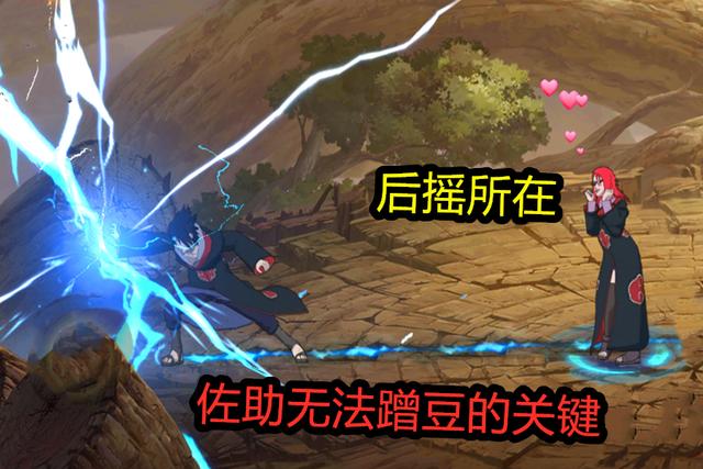 一开始大喵认为二技能三种形态都能蹭豆,在练习场中测试过才发现佐助是个例外。因为他释放千鸟冲击时,背后的香磷会因为过分迷恋佐助,产生巨大的技能后摇(无法通过技能或者奥义打断的奥义)。二级能中水月又是极不靠谱的一个,香磷召唤他时大概有3分之一的概率不听话(如果释放成功也可以奥义蹭豆)。所以大喵建议,在想使用奥义蹭豆时,尽量使用重吾吧!