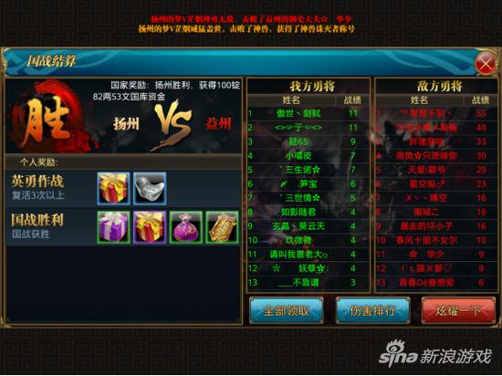 这次国战胜利扬州拿的较为轻松,一波带走中央神兽,全程少了点激情火气。胜兵先胜而后求战,败兵先战而后求胜。希望扬州继续保持高水准的执行力,同时也希望益州不要气馁、总结经验。一起为御龙而战,等待你们的再次激情碰擦~