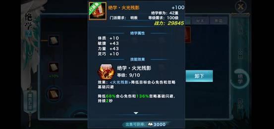 绝学中有降低目标会心免伤和忽略基础闪避的效果,也有获得基础会心几率加成以及小额持续回血的能力。