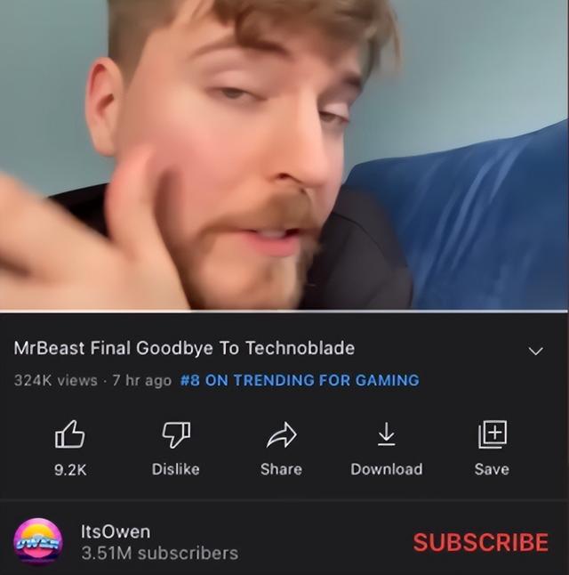 有人的确已经这么做了。一个名为“ItsOwen”的Youtube账号上传了MC另一位主播MrBeast对Techno逝世的表态,视频中MrBeast一改过往不正经的搞笑嘴脸,含泪道别。这个看上去很感人的视频实际上频道作者用过往素材拼接出来的,并非真实反应。不出意料,视频也得到了几十万的点击。