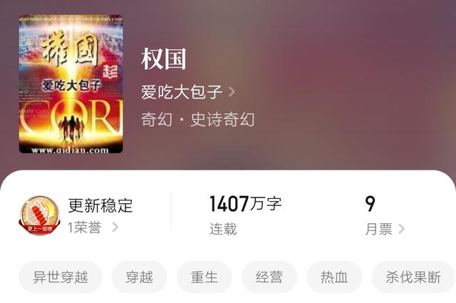 书评:权国,以权谋国的典范,在这个大时代之中,没有什么比争霸天下,更有趣的了。醒掌天下权,醉卧美人膝,这是每个男儿的梦想。骑马与砍杀类型从头至尾只有两个字,战争或者说征服,征服土地,领民,女人,财富,等等。评论只有一句话,我来,我见,我征服。不过最大的问题在于作者已经入魔,写的没完没了,后面的内容越来越水,水多的都快成海了。没看过的建议只看前部分!