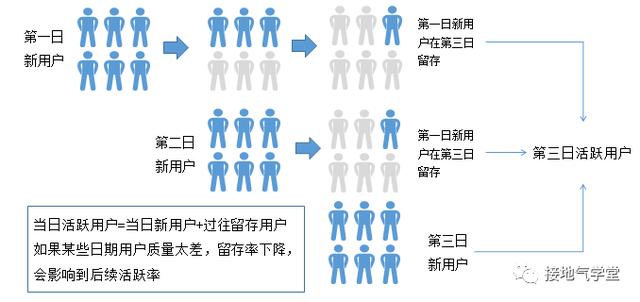 用户留存,用户活跃,用户流失,三者其实是用户活跃行为的三种不同统计方式。