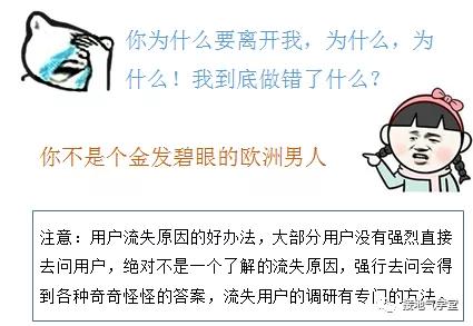 然而这只是第二重麻烦,第三重麻烦更难搞。就是大家都本能的,以为只要搞清楚了用户不活跃、留存低、流失的原因,就能把用户拽回来。这是非常徒劳和愚蠢的想法,就像分手的时候,男生拽着女生的手苦苦的问“你为什么要离开我,为什么,为什么,这是为什么,你给我个理由”