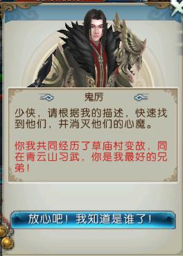 如文章开头所说,副本中需要找对鬼厉暗示的NPC,找对后BOSS会出现在地图中央,切记让新手玩家远离那个区域。下面呈上每个NPC对应的描述。