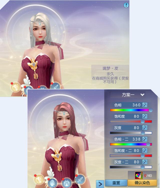 小编最感兴趣的,则是游戏内的发型染色还支持双色定制,每种颜色都可以手动制定详细的色相、饱和度和灰度,这无疑大大提升了可玩性和趣味性,喜欢梦幻感,那就整个浪漫的同色或岔色渐变;喜欢帅气冷峻的,搞个跳色挑染刘海也是不错的选择,总之,一切以个性化定制为主,自选调节颜色,托尼老师看了都说好!