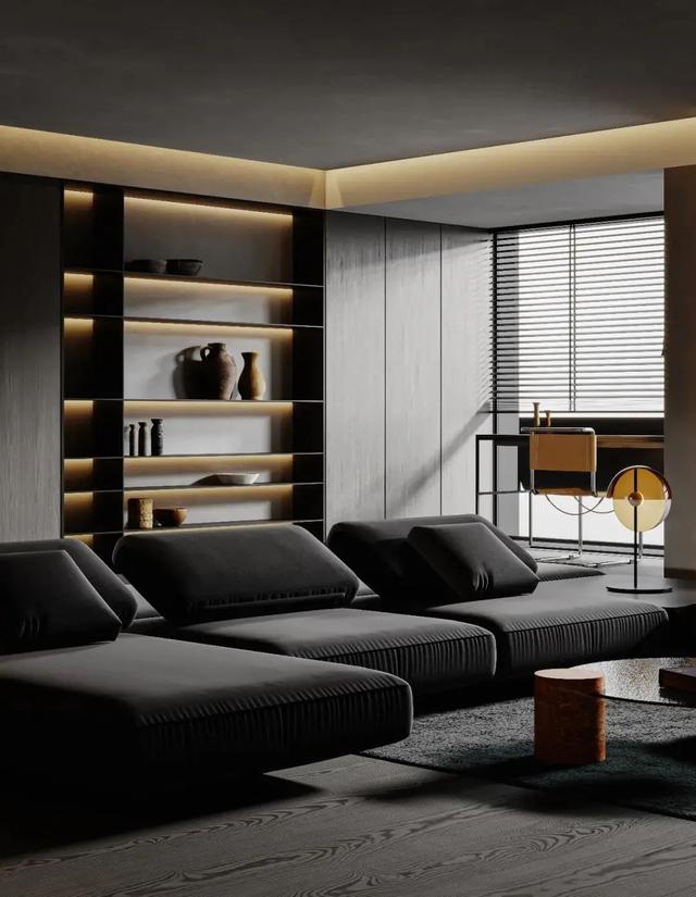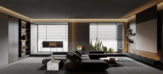 客厅靠窗区域划分了除了书房与户外绿植阳台,增强了空间与自然与自然的沟通与互动。