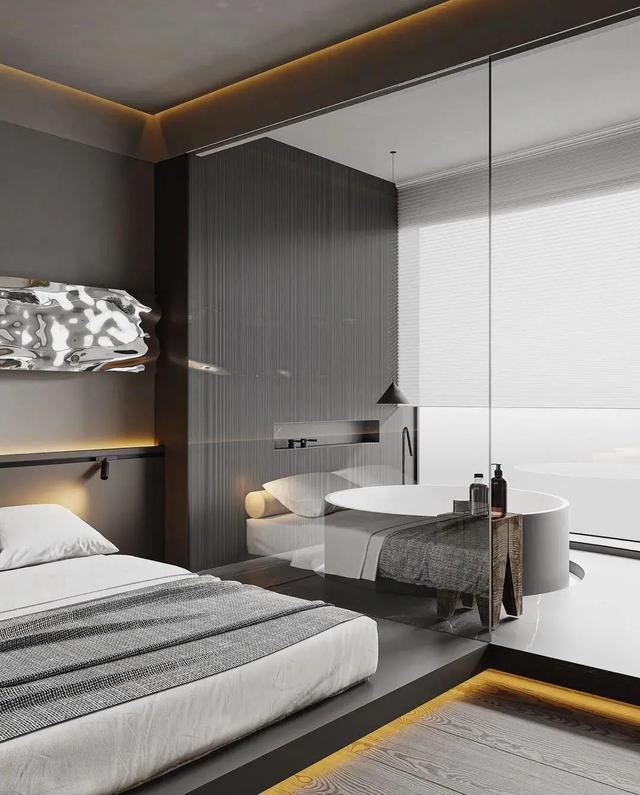 所以两人时常会分房休息,设计师为了打造最舒适的空间模式,将主卧与客房的空间贯通。