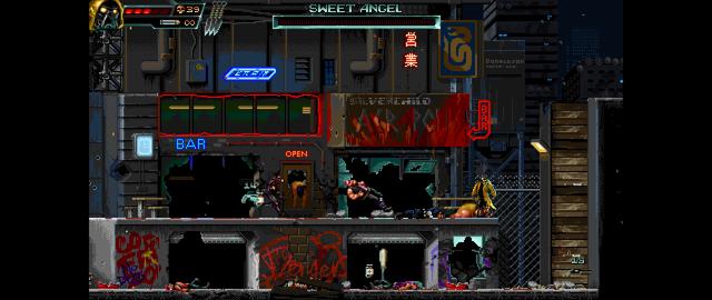 这是一款赛博朋克风格的像素横板射击通关游戏。