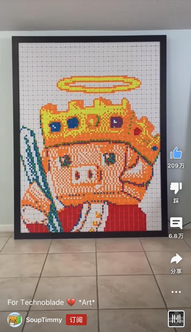 很多人都参与到了纪念Techno的活动中去——社交媒体上网友们创作了有关他的画作,短视频平台上手艺人们用各种自己的方式去还原他的游戏形象,“Technoblade Never Dies!”一时成为了流行用语。