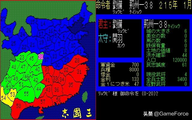 PC版光荣《三国志》1代,拥有58个城市的大地图