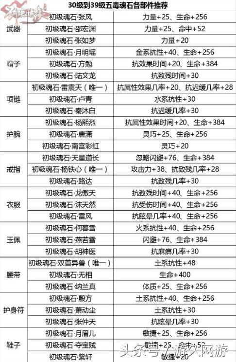 五毒在魂石的选择上,要针对性的提升和选择与门派相符的属性,也要注意魂石本身的品质。结合昆仑的作为远程持续输出的特性需要进一步提高输出能力强化,并且对灵巧、力量有额外加成的特点,弥补五毒生存能力的缺点和被减少被金系系门派克制的效果。