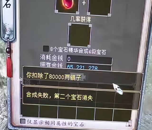 看到这里就放心了,上天还是对大家很公平的,没有6级宝石的玩家估计都有一大波,别说9级宝石了,这一颗消失的八级宝石不知道何年何月才能合出来,消耗很大,几率很小。