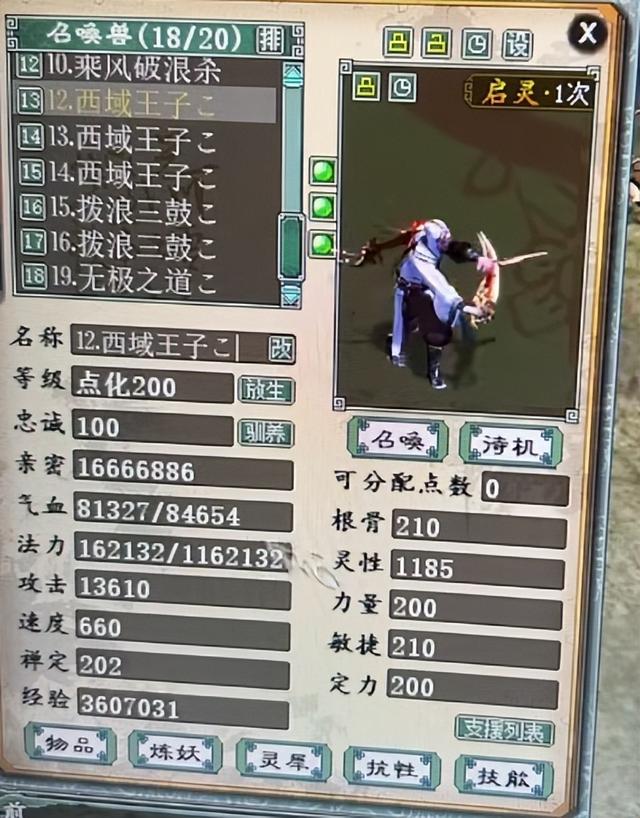 从上面初值来看就是一血敏召唤兽,可硬是让玩家打造成血攻敏,有玩家可能在考虑要不要给来一个高级神功,其实完全没有必要,这样的召唤兽基本出手就是连击,狂暴致命还高,唯一缺点就是觉醒技能和灵犀等技。