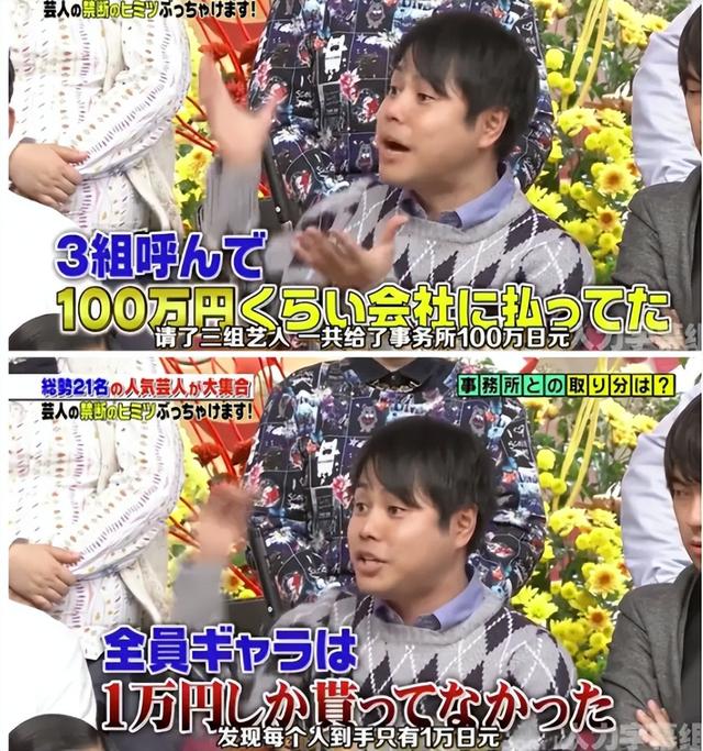 100万日元被公司扣除后,再分给这三组艺人,到每个人的头上可能只有1万日元。