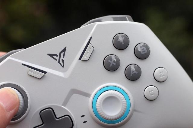 其次,在按键布局方面,飞智黑武士2采用左右按键布局,正面左半边为左摇杆加方向键,正面右半边为右摇杆+ABXYCZ技能键,中间为SELECT、START、加减和主页键。