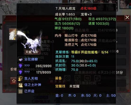 这是6技能龙马?分花,吉人天相,信土技能,外加两个3问号,这才叫吉人天相。以后妥妥的化无龙马一只,另外辅助一个什么终极技能好呢?以后再装备一套什么装备好,太愁人,这双终极技能龙马会不会上百万,土豪绝对预定了。