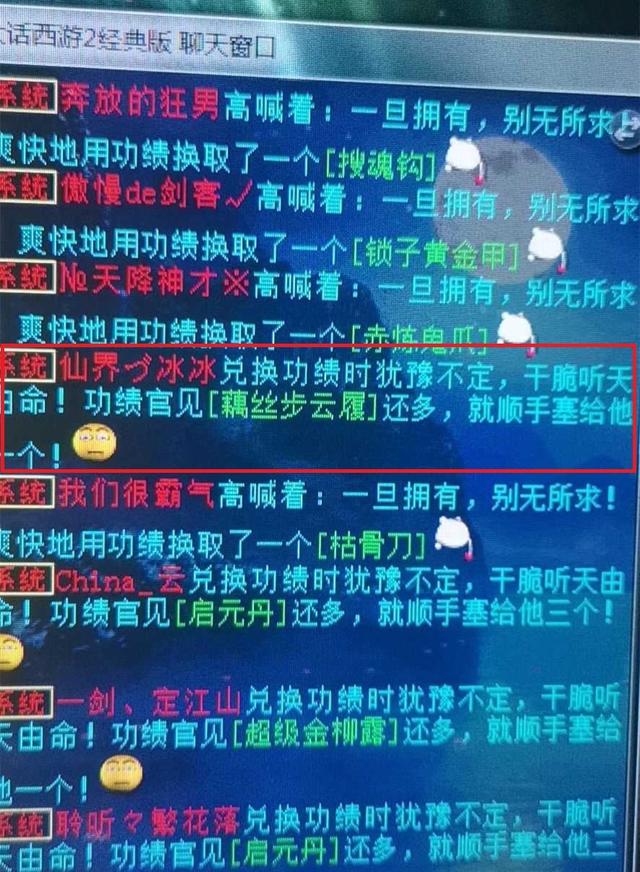 攒了一年的地宫积分,开始换神器之路,第一把搜魂钩,第二把锁子黄金甲,第三件赤练鬼爪,还不错,只有一件衣服。第4件是藕丝步云履,想多了,让冰冰玩家一个听天由命截胡了。第5件出了一把枯骨刀,整体这一波很肥,只有一件衣服。