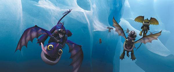 作为梦工厂四年磨一剑的力作,《驯龙高手2》从CG动画到 3D建模技术都力求创造一个新的视效标杆。IMAX“身临其境“的影院技术与前沿动画制作技术的结合为观众展现出动画片中难得一见的视效奇观。片中有一幕是小嗝嗝和无牙仔穿过狭窄的缝隙,突然豁然开朗看到桃花源般聚集了成千上万飞龙的山谷。这些飞龙千奇百态,五彩缤纷;山谷中绿草茵茵,溪流瀑布;在IMAX 巨大而清晰的银幕上,这一段奇遇如同一幅巨型画卷,让每一个观众都沉浸其中,如同置身于梦中的场景。
