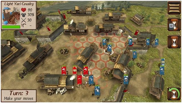 《幕府帝国》作为一款策略性手游,战斗场面依然采用了经典的回合制,游戏中超多角色可供玩家选择,毕竟日本战国时期“大名”(诸侯的意思)的数量还是很多的,玩家选择一位势力后,就可以挑战该名势力的剧情了,游戏中每一场战斗的地图都很大。每次战斗都需要玩家充分地利用战场中的地形,合理地进行排兵布阵,发挥出军团的最大潜力。