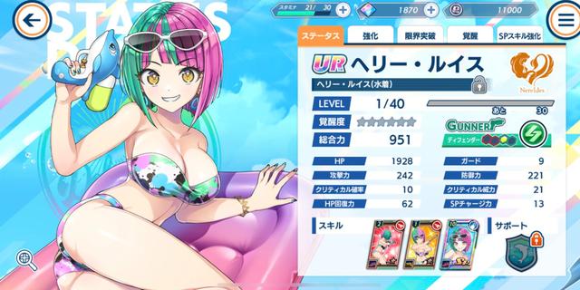 在养成机制方面,游戏内共有三大养成目标,分别是角色(海豚)、卡片(memory)、水上机。角色可以通过强化、界限突破、觉醒等方式提升战力,卡片需要通过吃狗粮来升级,水上机则需要花费金币强化战力。(又肝又氪的节奏)