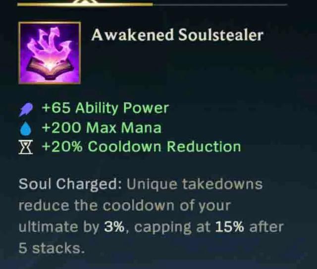 唯一被动:独特的击杀会减少3%终极技能的冷却时间,最多可叠加5层到15%