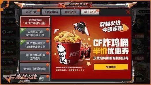 6.吃鸡营销!肯德基与CF荒岛特训达成合作 玩游戏就得半价套餐
