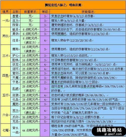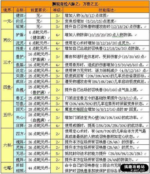 在梦幻西游手游最新的开发预告里,开发组人员以及透露在未来将会开放经脉系统,那么还不了解狮驼奇经八脉加点的新人玩家,暂时可以参考梦幻西游端游的加点方案,一起来补补脑!